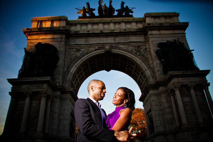 The day I shot Khadija and Ike's Engagement session was an odd one. First off, it was 60 degrees and sunny in November... awesome. Next, I generally avoid driving in NYC like it's the plague, so I strapped about 60 pounds worth of gear to my back and decided to rely on public transportation, which failed me at every turn. Then, a little frustrated, I met up with Khadija and Ike, and all my frustration melted away. They are two of the nicest, most genuine people you could ever want to meet, and on top of that, complete naturals in front of the camera. They also have a great story about how they met, and Ike had one of the smoothest proposal stories I've ever heard. "... the only thing he would change about her is her last name." We had a great time walking around The Botanical Gardens and then the quick walk over to Grand Army Plaza. I ended the day with a sore back, feet on fire, and a big smile on my face. I love my job.